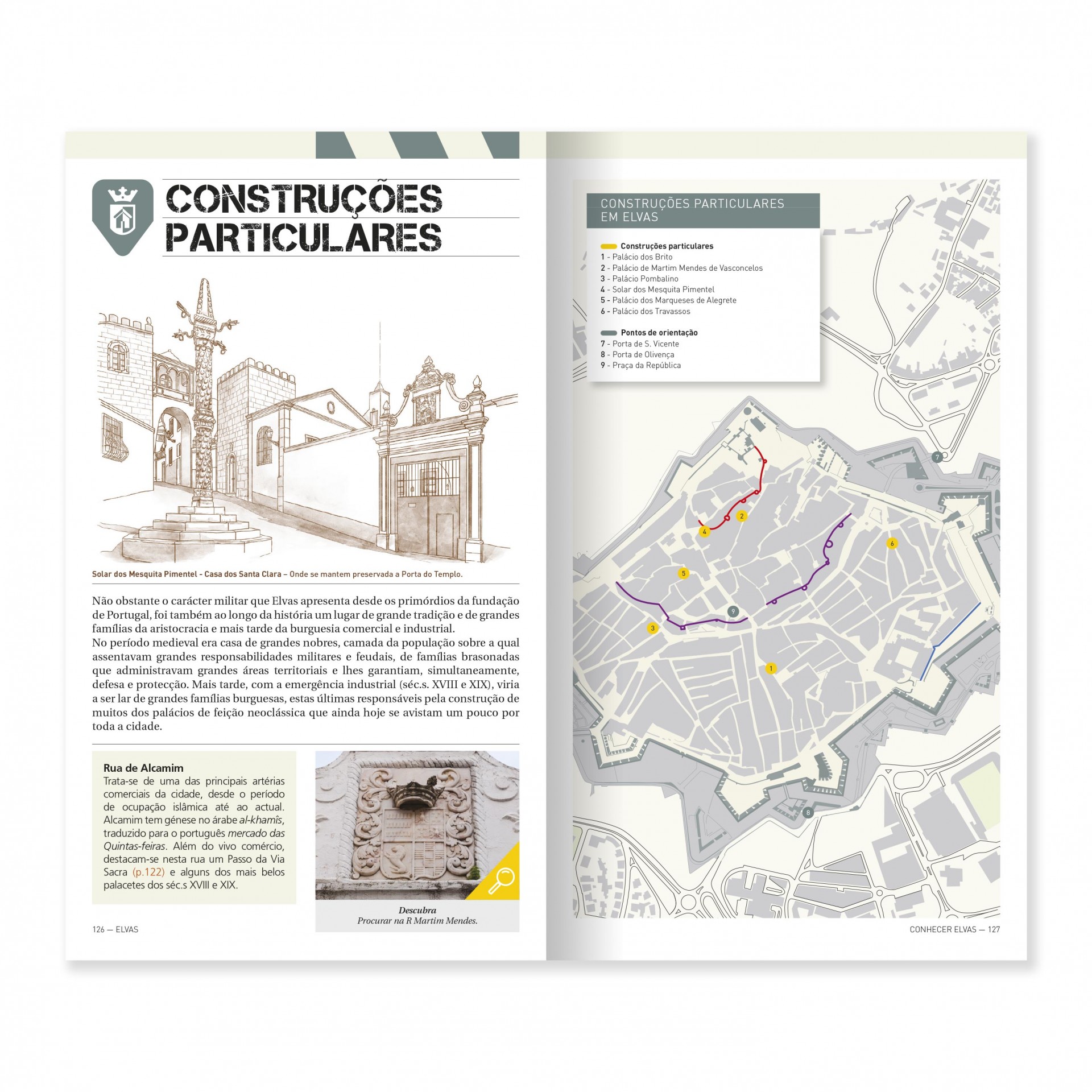O Castelo de Elvas, a Praça de Elvas, o Forte de Santa Luzia, o Forte da Graça e o Aqueduto da Amoreira destacam-se na paisagem, mas têm uma numerosa companhia de outras construções notáveis. A história militar, a evolução da arquitectura militar – islâmica, fernandina, fortalezas abaluartadas - e um extenso catálogo da história da arte desafiam o nosso conhecimento e o nosso sentido de descoberta.