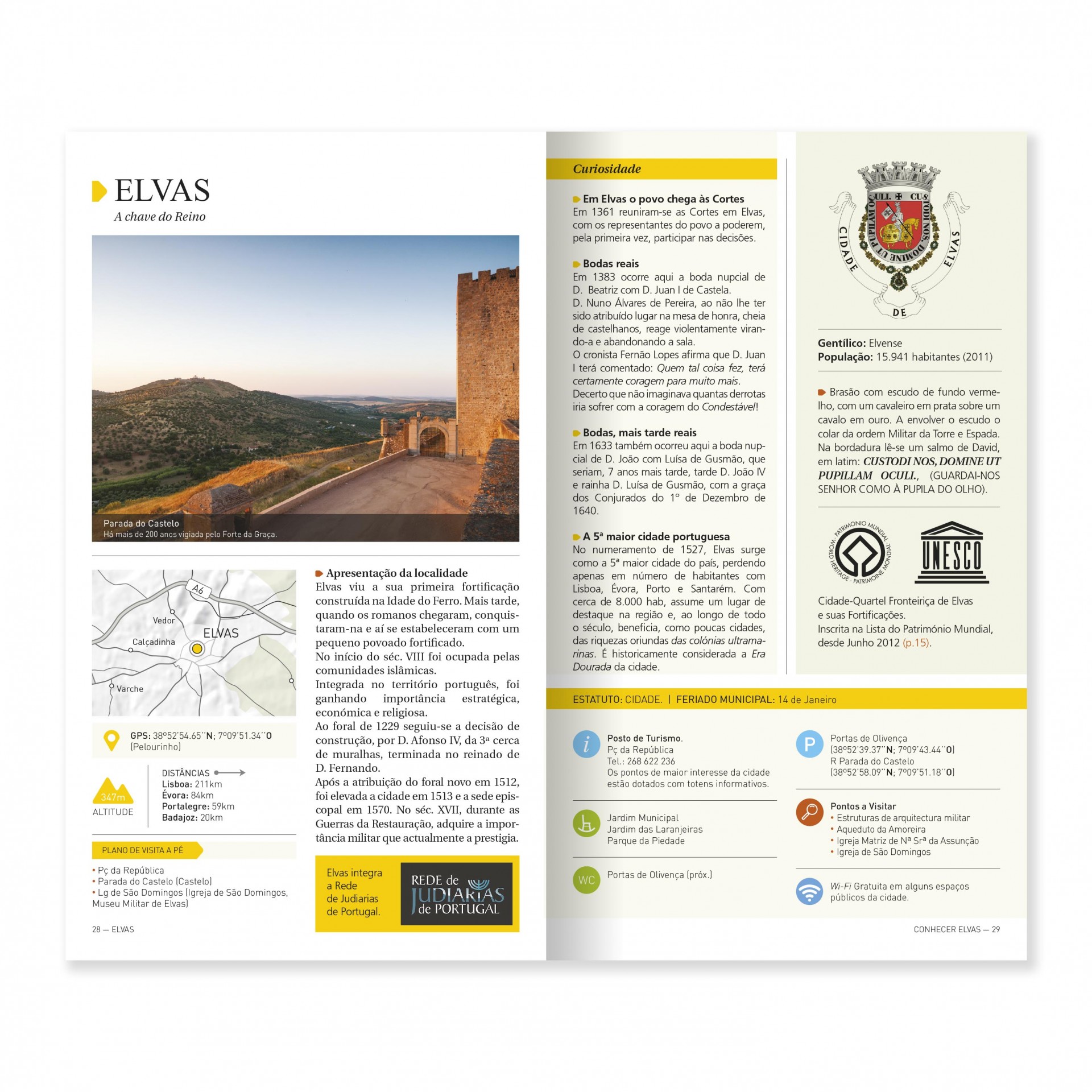 Uma grande estrela brilha na planície do Alto Alentejo, vaidosa das suas muralhas, fortes e fortins, que nos fazem recuar aos tempos de outras guerras. Ímpar na sua dimensão monumental, no estado de conservação de cada elemento e na diferenciação arquitectónica e qualidade artística que impera nos seus muitos templos.